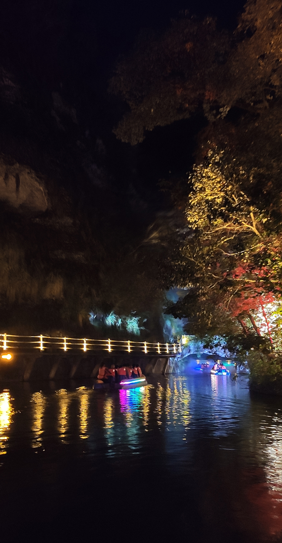 入夜,黨支部一行來(lái)到本次文旅最精彩的項(xiàng)目:“夜游九龍?zhí)?rdquo;。以“夜游九龍?zhí)?,靜享夜的美”為主題的“行進(jìn)式”水上峽谷夜游景區(qū),利用現(xiàn)代化聲光技術(shù)與景區(qū)自然美景有機(jī)融合,讓您充分感受“詩(shī)意山水,光影幻境”。聽(tīng)蛙唱蟲(chóng)奏,觀月下仙境,月光映水,水波映月,加上臨水棧道邊笛聲陣陣......讓您真切的領(lǐng)會(huì)空靈、幽靜、夢(mèng)幻的別樣意境。一路的聲光風(fēng)景讓人目不暇接,如果不是身臨其境,絕對(duì)感受不到那光影與大自然結(jié)合產(chǎn)生的絕妙意境。