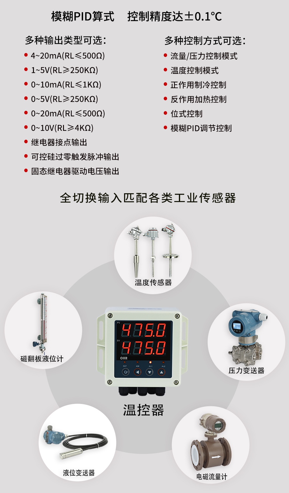 虹潤(rùn)公司是專(zhuān)業(yè)生產(chǎn)溫控器的國(guó)家專(zhuān)精特新“小巨人”企業(yè)。生產(chǎn)的壁掛式PID溫控器,具有全切換信號(hào)輸入,真正人工智能算式,控制精度達(dá)士0.1°C,防護(hù)等級(jí)高,RS485通訊輸出DN等特點(diǎn)。產(chǎn)品獲得模糊PID控制儀及控制方法、人工智能調(diào)節(jié)器、智能化控制器、移相觸發(fā)控制器、閥門(mén)自動(dòng)手動(dòng)無(wú)擾動(dòng)操作控制方法及裝置等5項(xiàng)國(guó)家發(fā)明專(zhuān)利,主持起草主持起草工業(yè)過(guò)程控制系統(tǒng)用模擬輸入兩位或多位輸出儀表、物聯(lián)網(wǎng)智能溫度儀表通用技術(shù)條件、工業(yè)過(guò)程測(cè)量和控制系統(tǒng)用智能調(diào)節(jié)器等3項(xiàng)國(guó)家標(biāo)準(zhǔn),以及通信系統(tǒng)多通道數(shù)據(jù)采集控制終端規(guī)范軍用標(biāo)準(zhǔn)。參與國(guó)際5G標(biāo)準(zhǔn)制定,取得傻瓜式PID調(diào)節(jié)儀等3項(xiàng)相關(guān)軟件著作權(quán)。產(chǎn)品廣泛應(yīng)用于電力、石化,冶金、制藥、食品等幾乎所有工業(yè)現(xiàn)場(chǎng),實(shí)現(xiàn)精準(zhǔn)控溫,保障生產(chǎn)安全與質(zhì)量。
