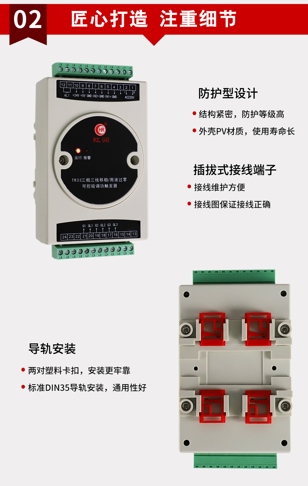 虹潤公司是專業(yè)生產(chǎn)移相觸發(fā)器的國家專精特新“小巨人”企業(yè),生產(chǎn)的移相觸發(fā)器,具有采用光電隔離設(shè)計,自動同步功能,過流保護(hù)技術(shù),電源缺相檢測,信號超限報警等特點(diǎn)。產(chǎn)品獲得巡回檢測顯示方法及裝置、儀表殼體等2項(xiàng)國家發(fā)明專利,主持起草工業(yè)過程控制系統(tǒng)用模擬輸入兩位或多位輸出儀表、物聯(lián)網(wǎng)智能溫度儀表通用技術(shù)條件等2項(xiàng)國家標(biāo)準(zhǔn)以及通信系統(tǒng)多通道數(shù)據(jù)采集控制終端規(guī)范軍用標(biāo)準(zhǔn),參與國際5G標(biāo)準(zhǔn)制定,取得外置移相觸發(fā)器等2項(xiàng)相關(guān)軟件著作權(quán)。產(chǎn)品廣泛應(yīng)用于工業(yè)溫控、電極控制、航天軍工、電爐溫控、食品醫(yī)藥等諸多領(lǐng)域。