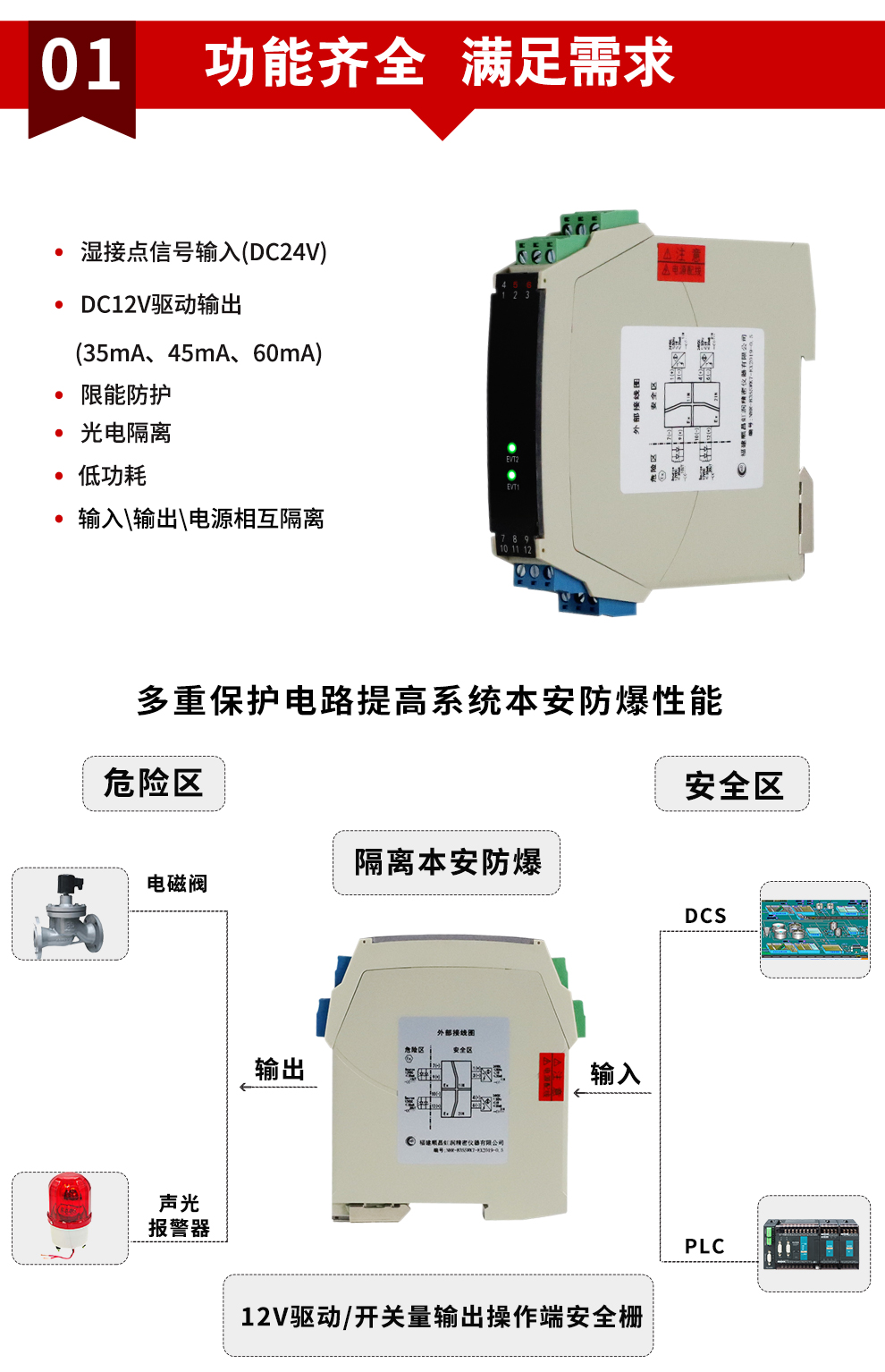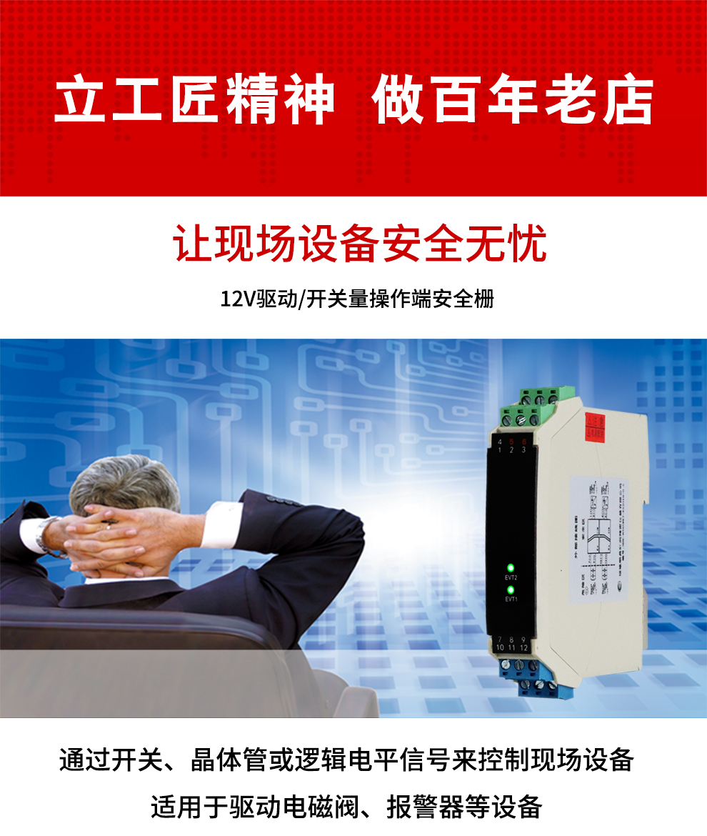 虹潤(rùn)公司是專業(yè)生產(chǎn)隔離器的國(guó)家專精特新“小巨人”企業(yè)。生產(chǎn)的隔離式操作端安全柵涵蓋信號(hào)電壓輸入、電流輸入、開關(guān)量輸入等多種產(chǎn)品類型。產(chǎn)品獲得具備減震抗干擾能力的溫度變送器、信號(hào)隔離器、一種二端子模塊、無源信號(hào)隔離器等4項(xiàng)國(guó)家發(fā)明專利,主持起草物聯(lián)網(wǎng)智能溫度儀表、現(xiàn)場(chǎng)設(shè)備工具(FDT)接口規(guī)范、工業(yè)過程測(cè)量和控制系統(tǒng)用溫度變送器等3項(xiàng)國(guó)家標(biāo)準(zhǔn),以及通信系統(tǒng)多通道數(shù)據(jù)采集控制終端規(guī)范軍用標(biāo)準(zhǔn)。參與國(guó)際5G標(biāo)準(zhǔn)制定,取得智能隔離式安全柵等4項(xiàng)相關(guān)軟件著作權(quán)。產(chǎn)品廣泛應(yīng)用于石油、電力、化工,冶金、智能制造、污水處理等諸多行業(yè)。