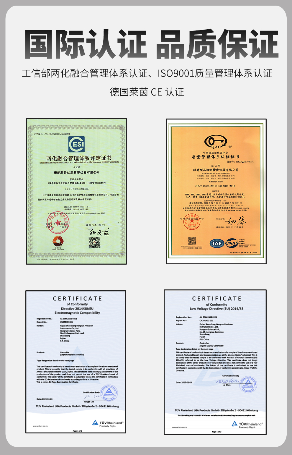 虹潤公司是專業(yè)生產(chǎn)數(shù)顯表的國家專精特新“小巨人”企業(yè),生產(chǎn)的簡易型數(shù)字顯示控制儀,具有全切換信號輸入,多種外形尺寸,高抗干擾,輸入/輸出/電源三隔離,性價比高等特點。該產(chǎn)品不僅通過德國萊茵 CE 認證,還獲得巡回檢測顯示方法及裝置、儀表殼體等2項國家發(fā)明專利,主持起草工業(yè)過程控制系統(tǒng)用模擬輸入兩位或多位輸出儀表、物聯(lián)網(wǎng)智能溫度儀表通用技術(shù)條件等2項國家標準,以及通信系統(tǒng)多通道數(shù)據(jù)采集控制終端規(guī)范軍用標準,參與國際5G標準制定,取得簡易數(shù)顯儀表等3項相關(guān)軟件著作權(quán)。產(chǎn)品廣泛應(yīng)用于電力、石化、冶金、化工、造紙、食品、輕工、制藥、熱處理、水處理、機械配套等各種工業(yè)現(xiàn)場。