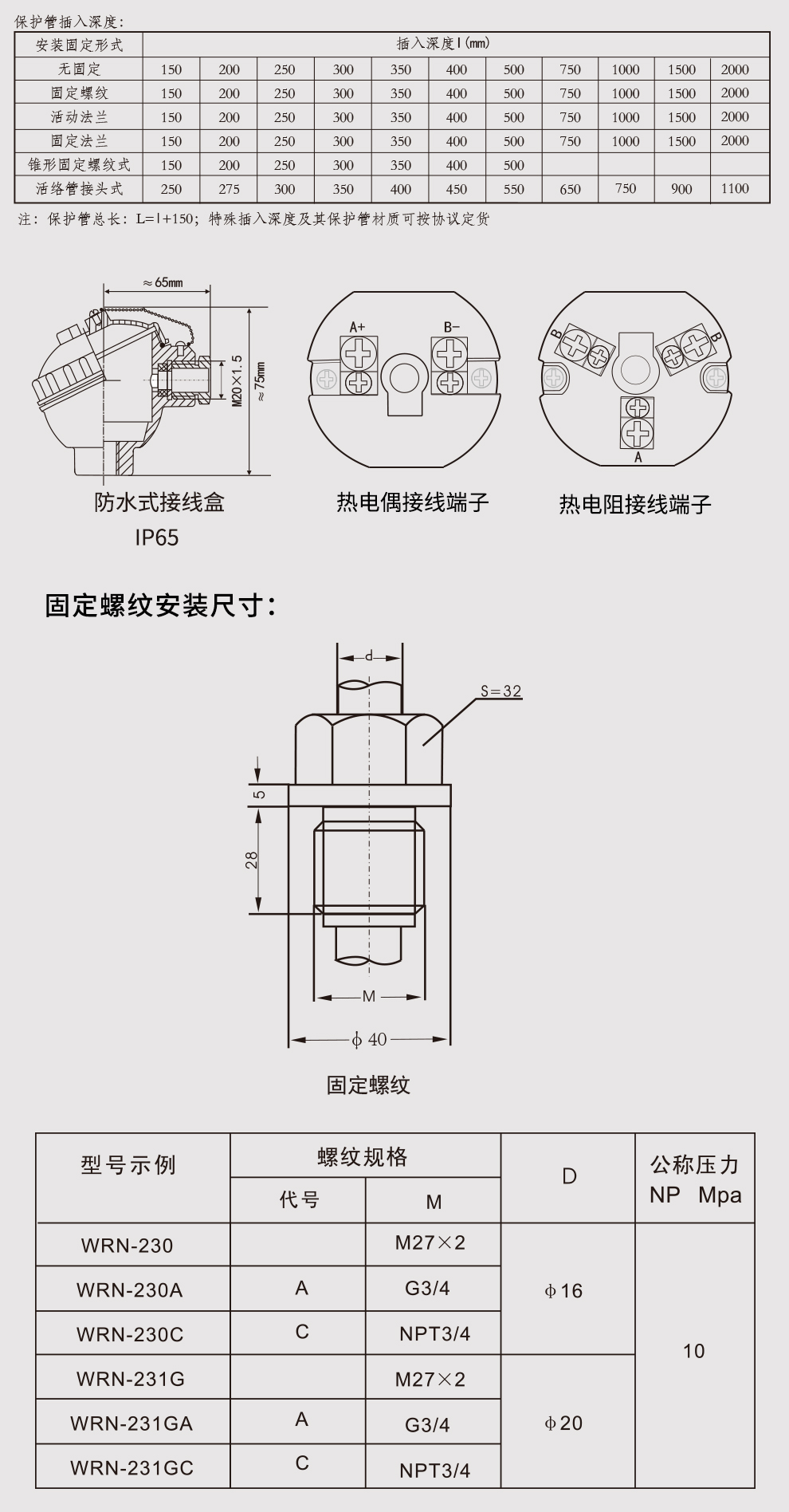 裝配式熱電阻熱電偶