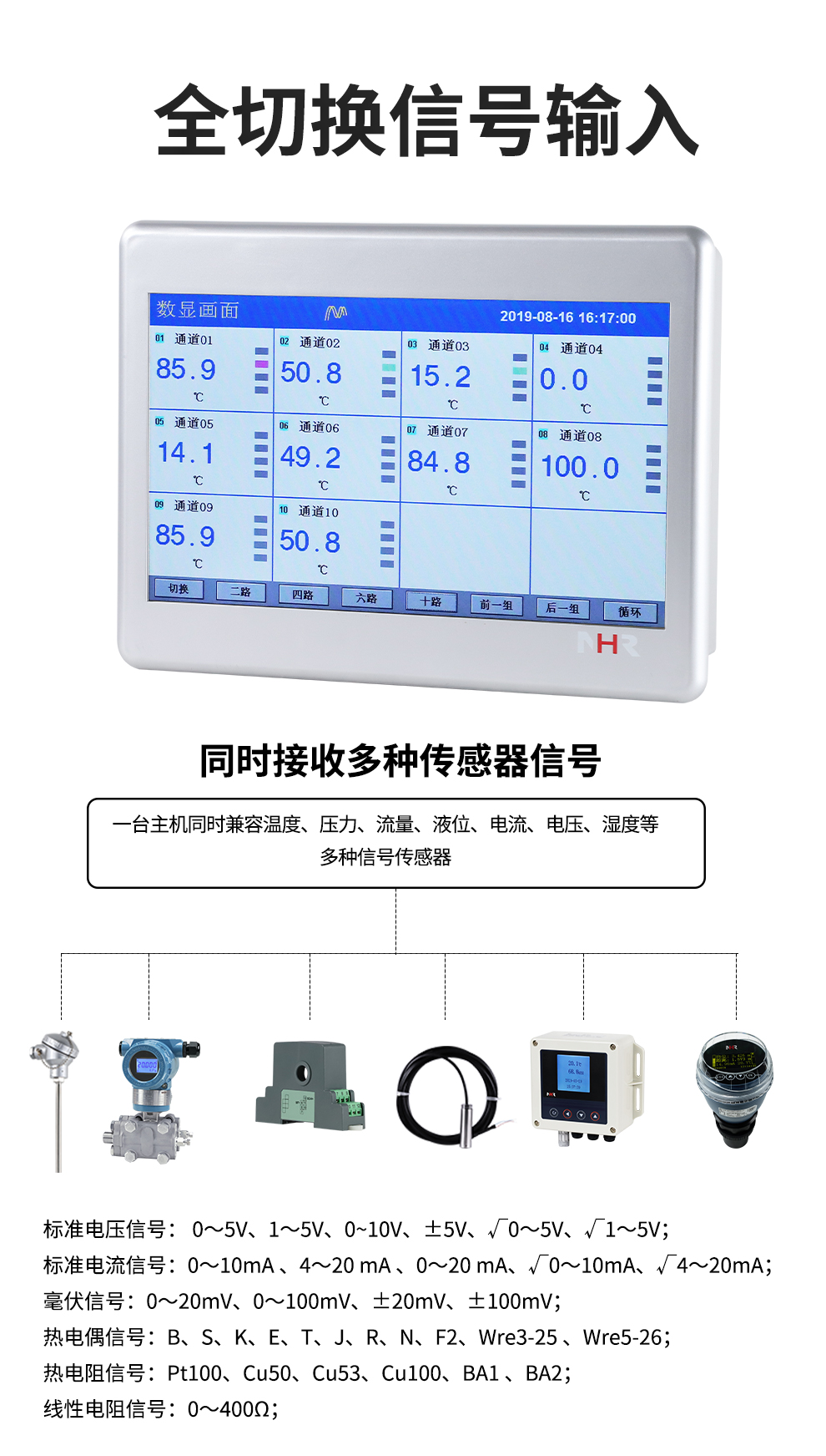 虹潤公司是專業(yè)生產(chǎn)無紙記錄儀的國家專精特新“小巨人”企業(yè)。生產(chǎn)的觸摸屏無紙記錄儀,具有觸摸大屏顯示,多通道全切換輸入,數(shù)據(jù)記錄與轉(zhuǎn)存, RS485/以太網(wǎng)通訊,5/7/9英寸可選等特點(diǎn)。產(chǎn)品獲得一種無紙記錄儀、數(shù)據(jù)采集控制工作站、智能化控制器、巡回檢測顯示方法及裝置等4項(xiàng)國家發(fā)明專利,主持起草物聯(lián)網(wǎng)智能記錄儀表通用技術(shù)條件、物聯(lián)網(wǎng)智能溫度儀表通用技術(shù)條件等2項(xiàng)國家標(biāo)準(zhǔn),通信系統(tǒng)多通道數(shù)據(jù)采集控制終端規(guī)范軍用標(biāo)準(zhǔn),以及空間數(shù)據(jù)與信息數(shù)據(jù)傳輸系統(tǒng)等2項(xiàng)航天標(biāo)準(zhǔn),參與國際5G標(biāo)準(zhǔn)制定,取得觸摸屏彩色無紙記錄儀等4項(xiàng)相關(guān)軟件著作權(quán)。產(chǎn)品廣泛應(yīng)用于冶金、石化、電力、制藥、新能源、現(xiàn)代農(nóng)業(yè)、生產(chǎn)過程等諸多領(lǐng)域。