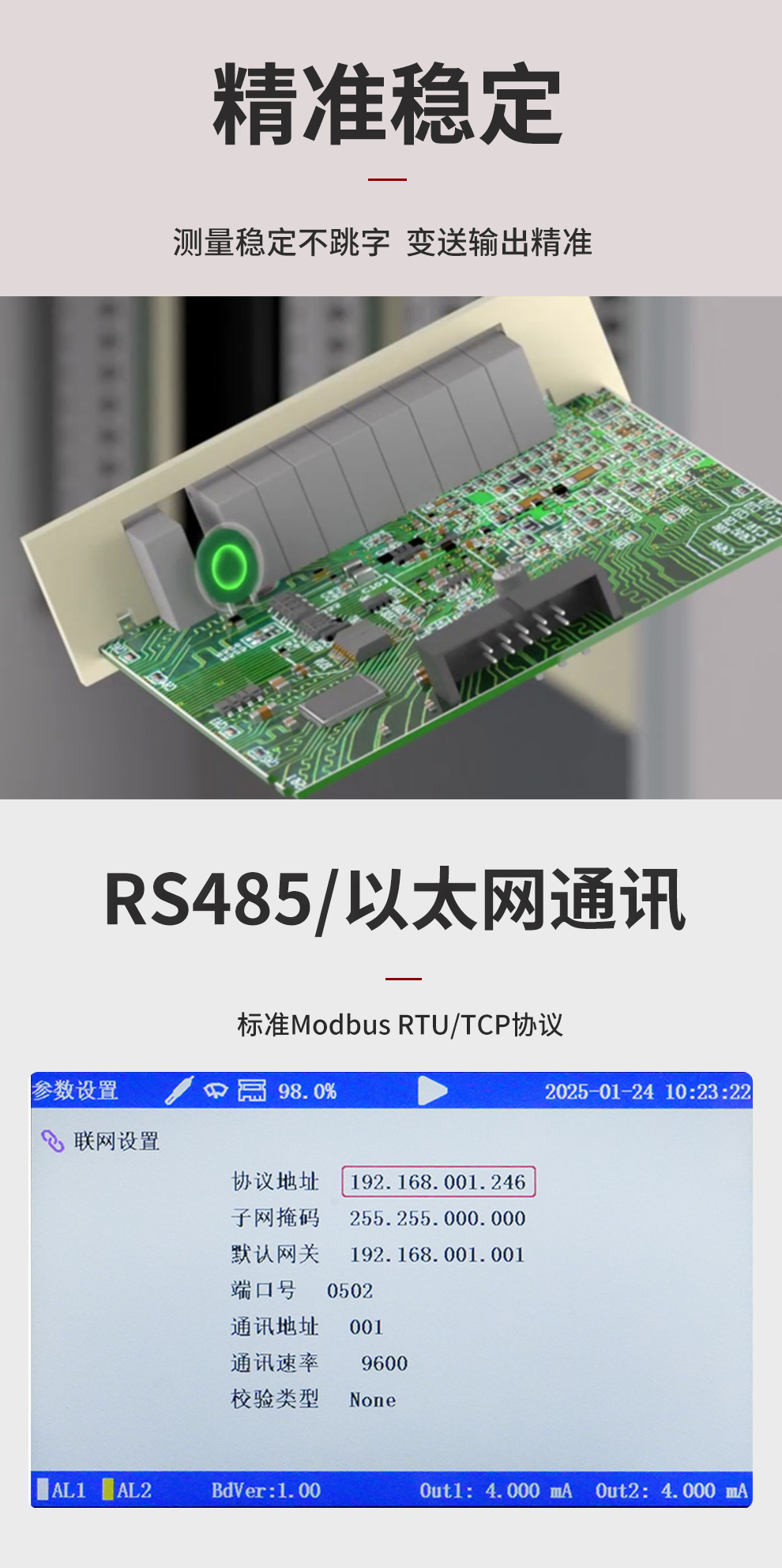 虹潤公司是專業(yè)生產(chǎn)水質分析儀的國家專精特新“小巨人”企業(yè)。生產(chǎn)的濁度/污泥記錄儀,具有彩色大屏顯示,測量精準穩(wěn)定不跳字,數(shù)據(jù)記錄與轉存,RS485/以太網(wǎng)通訊,配套上位機管理軟件等特點。產(chǎn)品獲得一種平板無紙記錄儀、智能化控制器等2項國家發(fā)明專利;主持起草物聯(lián)網(wǎng)智能記錄儀表通用技術條件、現(xiàn)場設備工具(FDT)接口規(guī)范.、過程分析技術系統(tǒng)等3項國家標準,以及通信系統(tǒng)多通道數(shù)據(jù)采集控制終端規(guī)范軍用標準,參與國際5G標準制定;取得濁度、污泥濃度無紙記錄儀等3項相關軟件著作權。產(chǎn)品廣泛應用于市政供水、污水處理、食品、制藥、造紙、石化、冶金、水處養(yǎng)殖等諸多領域。
