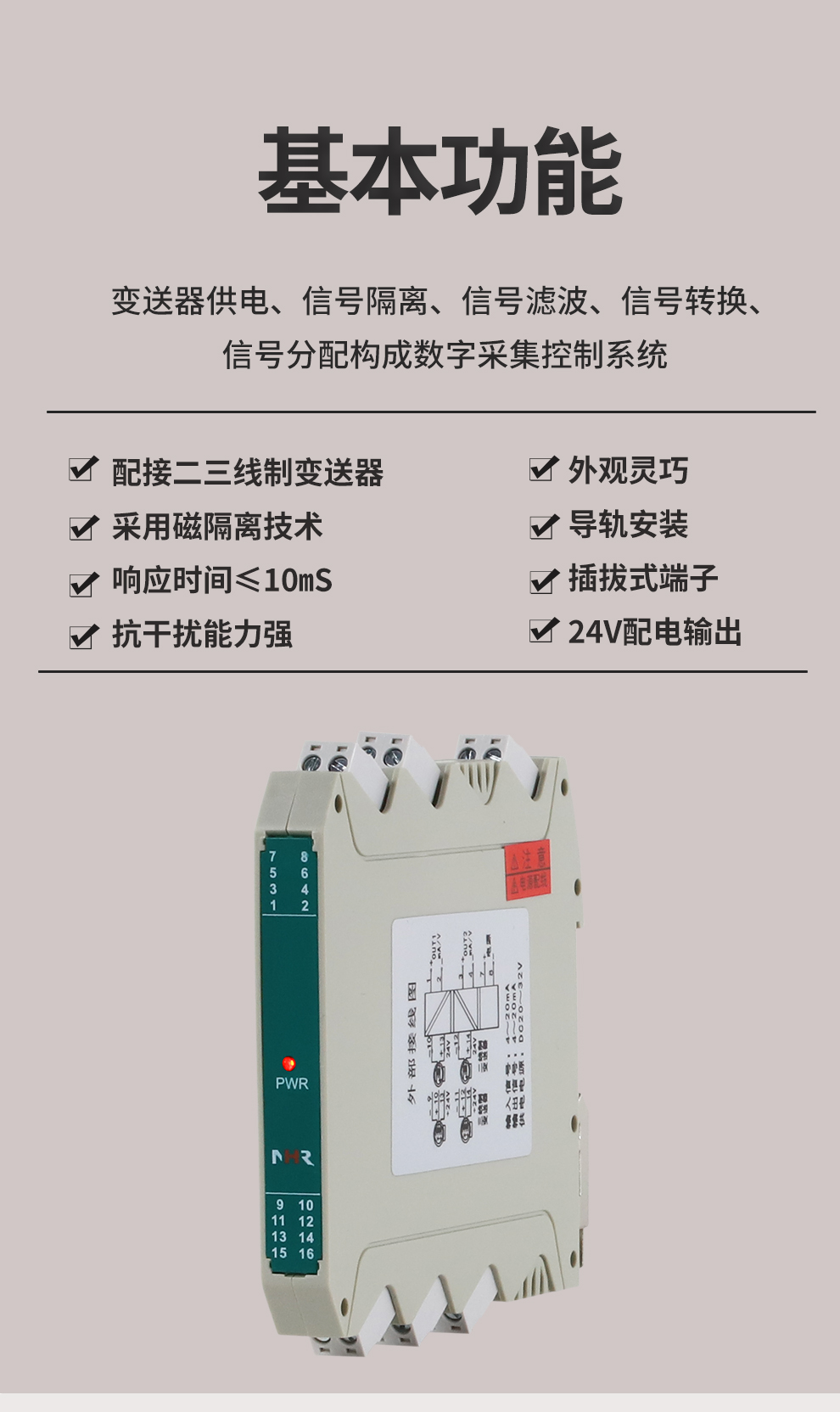 虹潤公司是專業(yè)生產(chǎn)隔離器的國家專精特新“小巨人”企業(yè)。生產(chǎn)的配電器,具有配接二三線制變送器,采用磁隔離技術(shù),響應(yīng)時間快,抗干擾能力強,24V配電輸出,性價比高等特點。該產(chǎn)品不僅通過德國萊茵 CE 認(rèn)證與 SIL 功能安全認(rèn)證,還獲得信號隔離器、二端子模塊、無源信號隔離器等3項國家發(fā)明專利,主持起草現(xiàn)場設(shè)備工具(FDT)接口規(guī)范、工業(yè)過程測量和控制系統(tǒng)用隔離式安全柵、工業(yè)過程測量和控制系統(tǒng)用配電器等3項國家標(biāo)準(zhǔn),以及通信系統(tǒng)多通道數(shù)據(jù)采集控制終端規(guī)范軍用標(biāo)準(zhǔn),參與國際5G標(biāo)準(zhǔn)制定。產(chǎn)品廣泛應(yīng)用于石油、化工,冶金、電力、食品、光伏能源、污水處理等需要電隔離的工業(yè)自動化控制系統(tǒng)。