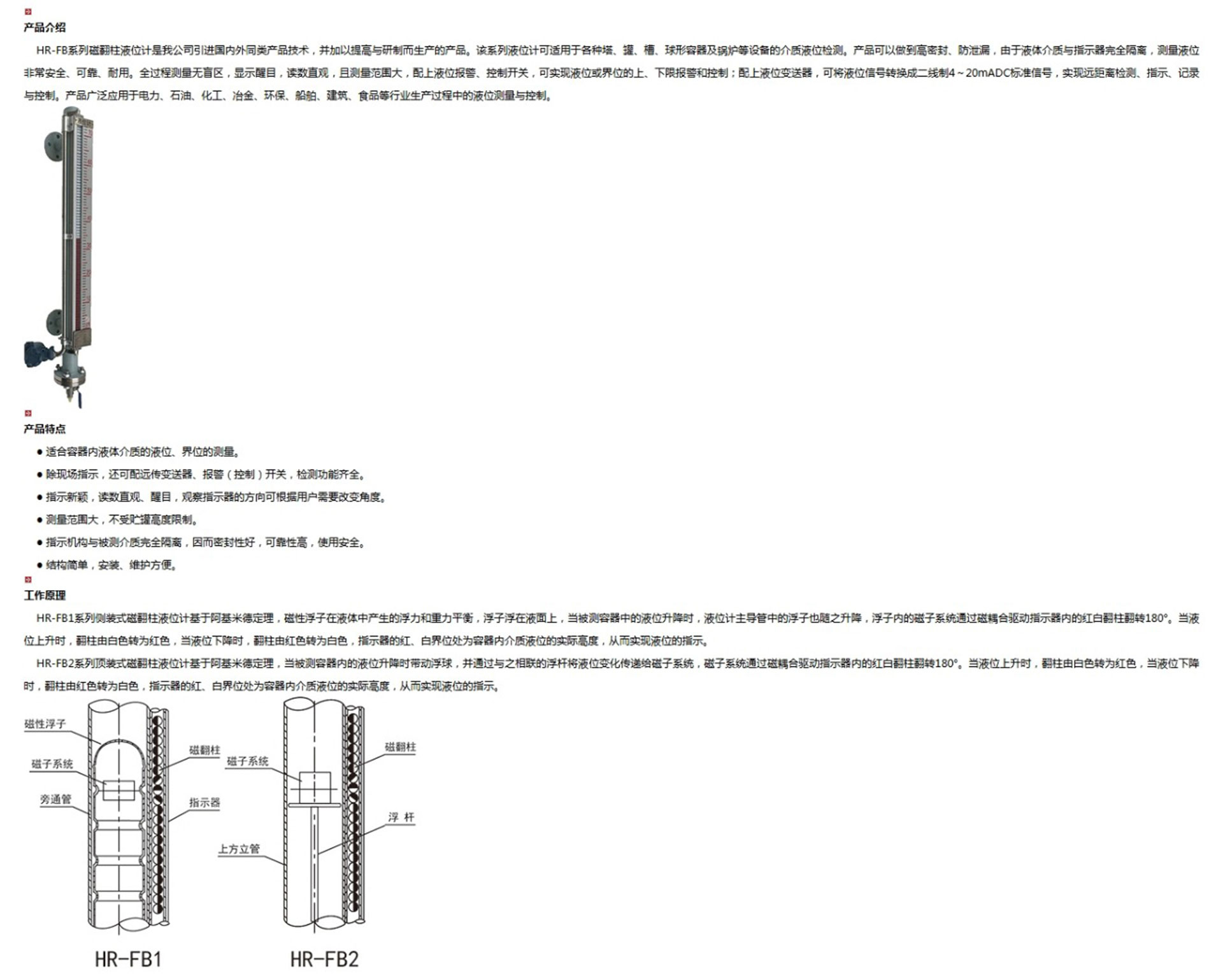 HR-FB系列磁翻柱液位計