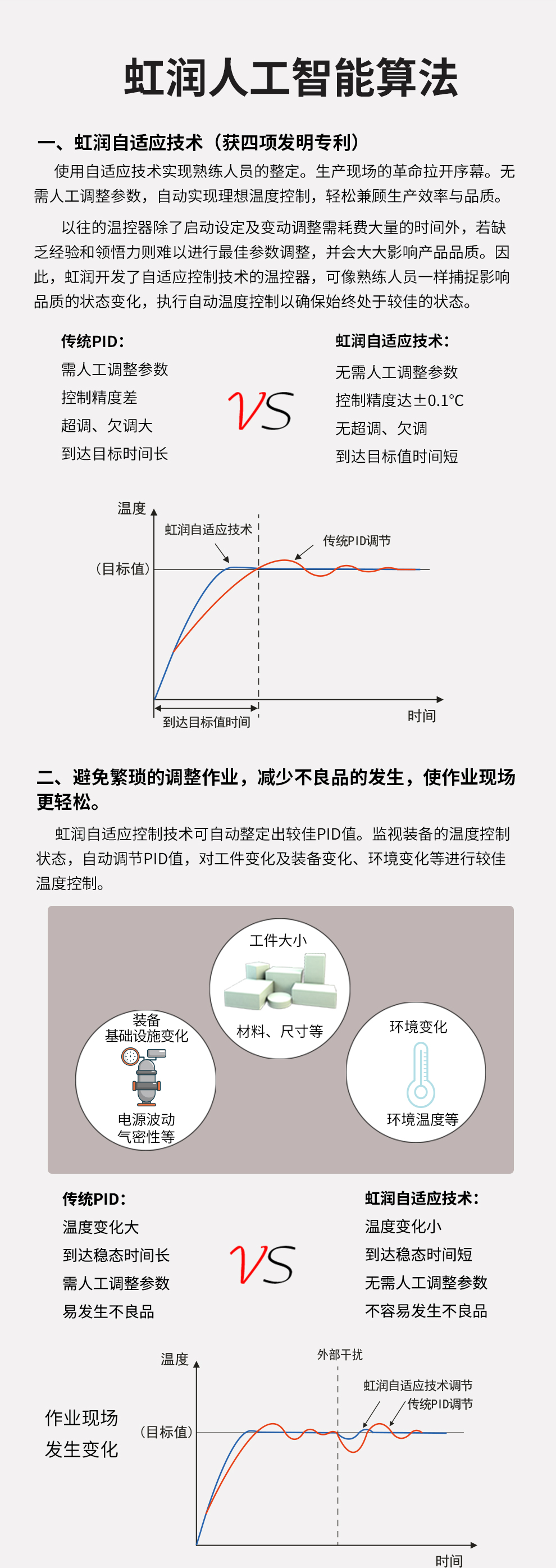 虹潤公司是專業(yè)生產(chǎn)無紙記錄儀的國家專精特新“小巨人”企業(yè)。生產(chǎn)的觸摸屏調(diào)節(jié)無紙記錄儀,具有觸摸大屏顯示,真正人工智能算式,無需人工整定參數(shù),控制精度達士0.1°C,數(shù)據(jù)記錄與轉(zhuǎn)存, RS485/以太網(wǎng)通訊,5/7/9英寸可選等特點。產(chǎn)品獲得智能化控制器、人工智能調(diào)節(jié)器及調(diào)節(jié)方法、模糊PID控制儀及控制方法、平板無紙記錄儀、巡回檢測顯示方法及裝置等5項國家發(fā)明專利,主持起草物聯(lián)網(wǎng)智能記錄儀表通用技術(shù)條件、物聯(lián)網(wǎng)智能溫度儀表通用技術(shù)條件、工業(yè)過程測量和控制系統(tǒng)用智能調(diào)節(jié)器等3項國家標準,通信系統(tǒng)多通道數(shù)據(jù)采集控制終端規(guī)范軍用標準,以及空間數(shù)據(jù)與信息數(shù)據(jù)傳輸系統(tǒng)等2項航天標準,參與國際5G標準制定,取得觸摸屏彩色調(diào)節(jié)無紙記錄儀等3項相關(guān)軟件著作權(quán)。產(chǎn)品廣泛應(yīng)用于電力、石化、冶金、化工、食品、制藥、熱處理、水處理、機械配套等諸多領(lǐng)域。