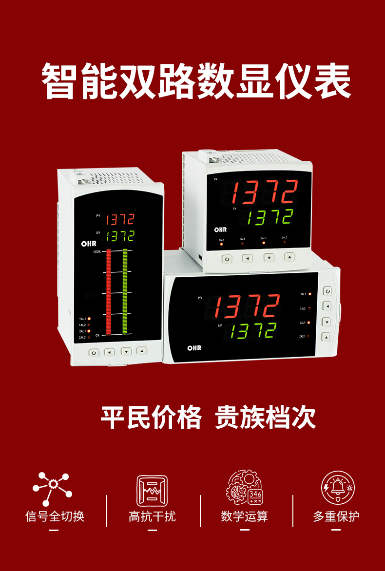 虹潤(rùn)公司是專(zhuān)業(yè)生產(chǎn)數(shù)顯表的國(guó)家專(zhuān)精特新“小巨人”企業(yè),生產(chǎn)的智能雙路數(shù)顯儀表,具有全切換信號(hào)輸入,加減乘除數(shù)學(xué)運(yùn)算,高抗干擾,過(guò)壓過(guò)流保護(hù),RS485/RS232通訊等特點(diǎn)。產(chǎn)品獲得巡回檢測(cè)顯示方法及裝置、儀表殼體等2項(xiàng)國(guó)家發(fā)明專(zhuān)利,主持起草工業(yè)過(guò)程控制系統(tǒng)用模擬輸入兩位或多位輸出儀表、物聯(lián)網(wǎng)智能溫度儀表通用技術(shù)條件等2項(xiàng)國(guó)家標(biāo)準(zhǔn),,以及通信系統(tǒng)多通道數(shù)據(jù)采集控制終端規(guī)范軍用標(biāo)準(zhǔn),參與國(guó)際5G標(biāo)準(zhǔn)制定,取得雙回路數(shù)字顯示控制儀表等3項(xiàng)相關(guān)軟件著作權(quán)。產(chǎn)品廣泛應(yīng)用于電力、石化、冶金、化工、造紙、食品、輕工、制藥、熱處理、水處理、機(jī)械配套等各種工業(yè)現(xiàn)場(chǎng)。
